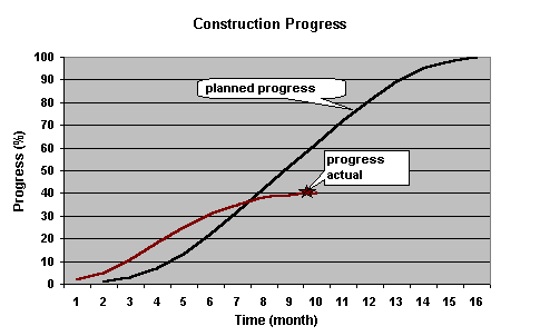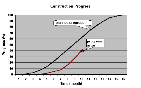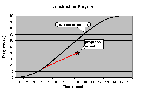 This situation could have developed from e.g. one of the following actual progress curves: |